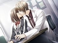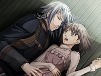 Kuugami Kyou/Halfas – So like what’s with Ishida Akira voicing male school nurses these days? 😆 Anyway Kuuga sensei is a school nurse and well it really took a while in the game before you actually got any scenes with him. I felt he really had very little to contribute to the story other than being a NEDE bad guy and even in his own story I felt there was very little interaction. He first tries to get close to her by using the teacher persona and invites her out to the cafe a lot. Eventually he wants to earn the trust of the twins as well since Reimei gets annoyed at her always being with him, so he comes over for some coffee. Reimei purposely spills coffee on him to make him take his shirt (hell yea naked mans ☆-(ノ。・ω・)八(。・ω・。)八(・ω・。)ノ イエーイ) to see if he has a weapon tattoo but it appears he doesn’t. Everytime he invites her out afterwards though Shiro comes along. Actually I felt Shiro played like a HUGE part in this story, I mean he was always the “I’m there for you girl~” person or whatever, god I love Shiro. (*´ε`*)ミュミュ :lol: Anyway NEDE calls them out tells them to come immediately if they want her mom back, and so she thinks this will never see him again and she goes to see him. He tells her he wont come but he shows up anyway and hugs her in the rain (lol srs rain scene – I gotta do a post on this for real.)