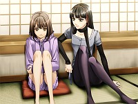 Bad Ends – Well I had to go back and replay the bad ends because I was missing some CGs so here’s a brief breakdown. In the general end, Shiro and Reimei go back to NEDE in exchange for Futaba’s safety. In Reimei’s bad end she tells him she came back because she’s the “boss of Fly Call” rather than telling him she liked him…so then he puts a sleeping medicine in her cup and that night he and Shiro leave her and go to NEDE alone. Before he goes he puts a sheet over her lips and kisses it. Sigh, this kiss scene was better than the good end one. 😐 In Ayumu’s bad end as you guessed it, he dies…right in front of Futaba. In Jin’s bad end I think Ensof takes over Futaba’s body and destroys everything except Jin so only they are left like Adam and Eve in the garden of Eden. In Cain’s bad end Futaba kills Abel and he gains his memories before dying in Cain’s arms. Cain gets so depressed he prolly goes to suicide somewhere when Futaba & the twins return to their house. I wouldn’t normally play bad ends honestly and these were rather sad than anything else. I expected like horribly gory blood ends but it was more like bittersweet so I guess it wasn’t all that bad.