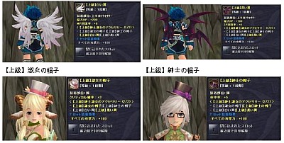 There’s also a new lottery box (which by the way is on sale this week too) where you can win a hat/wing set. Obviously each one is a separate item. The white wings give MP recovery and the white hat gives critical +3. Combined they give all attacks +100. The black wing/hat set when combined is the same except the hat gives meichuu +5 and the wings give SP recovery. While I’d like critical +3, I’ll stick to my meichuu +3 crown for now. The other stuff in the box is pretty decent like Critical/Meichuu level 5 stones so since it’s on sale for 200 points (200 yen) at least 1 box might be worth buying.