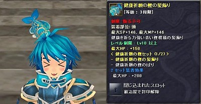 The yellow fish will give you concentration +3 and the blue one will give you hp +150. It’s a set with a cash item that will give you additional bonuses but unlike the head fish, the back item will expire in a certain amount of time. I’m thinking about the yellow fish for one of my sub characters xD We’ll see~(I want to stock up on C stones and HP potions more than anything at this point.)