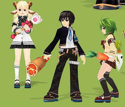 There are new weapon avatars (chicken leg for aerlot, sunflower for Cromodo, Carrot for Ruko – with Ruko written on it lol.) They are 600yen/month for rental. You can pick bonus stats of either attack speed +5, critical +5, or max HP(SP?) + 300. I kinda want but maybe for just a week while I get Ruko & Pinko up to 48. Spending another 600 for 3 characters is too expensive ;_;. Also there’s new hair styles. I picked up the braids for Pinko. Didn’t really like Cromodo’s new hair, covered up too much of his face. Elphintos’ hair is really nice though!