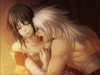 Harada Sanosuke – Sano had additional cute raburabu scenes added to his route. During the geisha scene he was fixing Chizuru’s lipstick and sending shivers down her spine 😉 Also at one point he made it really obvious to Shinpachi that he had “found a woman” but the bloke didn’t seem to get it. When Shinpachi went out to get drunk it was raburabu time for Sano and Chizuru x3. After they did it, Chizuru was feeling a little sick I guess cause Sano knocked her up? XD So then they kissed in the forest again. I swear this was the most raburabu route of them all. The epilogue scene was actually slightly before Chizuru had their baby. Sano was all like “OMG IS IT MINE?” Yea who else’s is it you dork xDD. The final CG was kinda disappointing though just showing their backs. Also turns out they were no longer in Japan but I guess somewhere in Vladivostok? I never realized that in the original game.