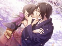 Hijikata Toshizo – Hijikata’s route there was a lol scene where Chizuru was dressed up in Geisha clothes and made all the guys go (;゚∀゚)=3ハァハァ over her. When attempting to take her home Hijikata was stopped and told to pay money for the Geisha he was taking home. Hijikata’s like WTF LAY OFF MAH WOMAN 😆 Additionally there was a scene of him getting completely ass drunk and toppling all over Chizuru because apparently he is weak to alcohol? At the end where he was injured and bleeding Chizuru offered her blood but he refused saying he’d heal on his own. She was like “STFU AND DRINK” and she made him drink it via kiss 😉 And finally there was an extra scene in the epilogue where Chizuru and Hijikata finally had a REAL KISS under the cherry blossoms (〃ノωノ)。 Hijikata seemed really tsundere the entire time, I mean a blushing Hijikata? You’d never believe it till you see it 😆