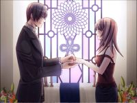 This time though they injure Nao’s fingers so he’s unable to play his piano properly or something. Anyway by that time Hikaru and Shinobu show up and everyone is beat up. Later on Nao and Koi talk together in his room (after Masaya told her to go in there and confess her feelings again) and Nao finally admits that he’s in love with her and we get a really fugly kiss CG. 😡 Anyway in the epilogue they are shopping and then Nao tells her to close her eyes while he takes her “somewhere”. That somewhere is a church and there he gives her an engagement ring and asks her to come to Austria with him after she graduates. I guess it was a cute end but I still feel ripped off because basically the routes were reversed. Now Masaya was the nice guy comforting her and Nao was turned into a drama queen just to create some kind of conflict. Also they went deeper into I guess the relationship between the 2 brothers and how Nao always wanted Masaya to acknowledge him as his oniichan. At least during the non angsty scenes Nao was pretty sweet so for those playing this game I’d recommend playing Nao’s route before Masaya’s.
