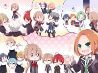 Izumi & Haru – Eh Izumi’s first name is like Takatsugu or something but writing and saying that is a mouthful so Izumi it is. I guess moneybee wanted to make more money so they added Konishi and Hino to the cast list as side chars. Izumi’s a freshman and in the Yakuza family and he hates it. He hates fighting but he admires his older brother. He didn’t wanna be in the way of his older brother’s superior achievements which is why he enrolled in Tsukiko’s school. Haru is the “leader” of the yakuza appointed by Izumi’s dad. Haru’s parents passed away and he joined the group at a young age. He had like no friends and a lot of people were afraid to talk to him but Izumi was like “yo bro let’s be BFFS!” Izumi has a huge crush on Tsukiko because he thinks she’s a superwoman that knows how to juggle her manharem 😆 Izumi also refers to Kanata as shishou so he can teach him fighting (suddenly Sangoku Rensenki flashbacks), Yoh as onigiri because he can’t stop bitching about food and Suzuya as okan as everyone else.