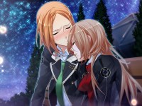 Tomoe Yoh – Yoh was surprisingly a lot less annoying in this game than in the first one. I guess some time apart from Tsukiko to focus on his studies calmed down his teenage hormones(ಠ_ಠ). First Yoh comes back to their school for that school festival with all the lights. They smooch (hooray a real kiss CG this time!) under all the lights and then he goes back to America. Once you start his route it’s basically half the time this one CG of her talking on the phone with him over and over. It’s this angsty long distance relationship and in between Yoh visits every now and then. He visits at the most convenient times too! 😆 Also that monitor-smooth CG returned which was big disappointment but I suppose it wouldn’t be starry sky without them? xD So then Yoh gets really busy with his research so he’s unable to call or respond to Tsukiko’s messages. When he comes to visit her in Japan she emos like a little bitch, tells him she wants to break up and then runs away and locks herself in a class room..wtf. So Yoh like runs after her and starts banging on the door like “you stupid bitch I’m leaving to America now wtf are you doing ( ಠ益ಠ )”.