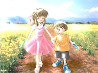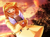 That night Yuichi visits her at the fountain again and she says that the day she bumped into him and Ayu she had planned to slit her wrists. When she got home, she went through with it, but then she remembered the happy faces of both Yuichi and Ayu and she felt miserable and ashamed of herself. She tells him that the plaid stole she always wears was a gift from Kaori. As they wait for the clock to hit midnight, she says her body temperature is hot and asks to lie down in the snow to cool off. She lies down saying she wishes she didn’t fall in love with Yuichi and he kisses her. After that Shiori disappeared leaving only her sketchbook where she drew a picture and the words “goodbye yuichi-san”. So see here I got all sad thinking damn I thought she wasn’t supposed to die what gives! But then spring time comes and I guess a miracle happens and whatever disease she had is either cured or she gets some drug to let he live longer or something. Anyway she’s able to return to school (but left back a year) and she buys all the ice cream at the cafeteria and tells Yuichi he has to eat it – before jumping into his arms and crying saying she didn’t want to die. In the epilogue Shiori is drawing a portrait of Yuichi and says that maybe they were all in someone’s dream and the person whose dream it was granted her the wish to continue to live on. Then they both think of Ayu and how Yuichi hasn’t seen her since she said goodbye to him after finding her “lost item”. ;_; Anyway overall not that bad of a route and the scene of the 2 sisters really moved me for some reason (*´ω`*).