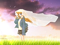 Misaka Shiori – While I’m not a fan of Shiori’s route either it was still better than Mai and I was slightly a little more moved in the game than I was in the anime. Yuichi meets Shiori because he sees her wandering around in the school yard outside. He decides to start up a chat with her and then he ends up coming to see her there every day during lunch and bringing her ice cream to eat. (I swear Yuichi gets all his women through food… プッ(※థэథ)∵.*.∵). Shiori tells Yuichi that she has a sister named Kaori but when Yuichi asks Kaori about this, she just responds saying she has no idea who “Shiori” is and that she’s an only child. Yuichi is confused and when he tells this to Shiori, she responds saying that maybe he asked the wrong person. They go on a date together after a while and they run into Ayu who says they look like siblings. At one point Yuichi runs into a former classmate of Shiori’s who tells him Shiori only came the first day of school and hasn’t attended ever since – which would be bizarre for someone who claims they just have a “cold”. Shiori’s hobbies include drawing scenery and people’s faces as well as watching melodramatic dramas. After they go on another date Shiori admits that she passed out on the first day of school and she’s been absent from class ever since. She wasn’t even supposed to go to school that day either but it was always her dream to go to the same school as her sister and wear the same uniform and eat lunch together. When they go to the fountain together Yuichi tells her that he likes her but Shiori apologizes saying she cannot answer his feelings. From then on she stops coming to the courtyard at school and instead Yuichi runs into Kaori.