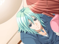 Kuze Michizumi – Yea I don’t think she ever said his first name in the game and it’s a mouthful so I’m calling him Kuze. Kuze is the tsundere we (me) all love but the game makers decided to make him look like the ORLY owl so his head is slanted like 90% of the time. Kuze considers Tsuzuri his fortune telling rival because his grandpa and her grandpa from back in the day were rivals – and his grandpa lost. When she gets sick he brings her garlic and some nasty home made medicine from his grandma. He tries to shove it in her mouth but in the CG it looks like he’s sticking a giant green dildo into her face – then her brother walks into the room プッ(※థэథ)∵.*.∵. They go on a double date to the amusement park with Amane and Kuze’s sister Izumi. In the haunted house she slips & falls right into his arms! (Apparently the house makers did this on purpose 😆 ) Anyway he asks her to a challenge on who’s the best fortune teller and she starts to realize you can’t always just tell the people exactly what you see – you gotta tell them what they wanna hear. (That’s why fortune telling is complete bullshit(ಠ_ಠ)). Anyway he eventually drops the challenge crap and then on Xmas eve he blurts out a confession after glomping and kissing her. In the epilogue he rejects other ho’s because he only wants valentine’s day gifts from his honey. Tsuzuri gives him some bitter chocolate (because he hates sweet things) and a sweater and they kiss some moar. Too bad neither of the kiss CG was decently drawn enough to post here orz.