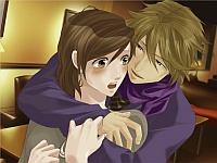 Ayaori Kaname (Kugami Enju) – Kaname is the celebrity guy who ends up doing a TV program about a host club which is why he becomes a host at Gorgeous in the first place. He’s only 20 and pretty immature and talks like a valley girl (うお、マジっかよ!ww) In the first 3 months it’s hard to even get with him to begin with. First I was refused to even see him, and when I finally got the chance to see him, when I picked 会話 the manager would tell me “ah sorry he’s busy”. WTF MAN (ノಥ益ಥ)ノ 彡┻━┻ What I ended up having to do is save state and if he refused to talk to me, I’d just shove 20 shirts in his face that month. I think in June I ended up giving him like 7 shirts because of this instead of the usual 2 per month 😆 At first Kaname only remembers Akari as the girl who didn’t want his autograph because Akari is not a fan of his anyway. She ends up being filmed for a CM with him but they cut her scene out so when she runs into him on the streets, Kaname tells her that next time he’ll give her priority. Fortunately after this incident, I was able to have a convo with him without any problems although I had more than enough bags and wallets to spare just in case アッヒャッヒャ!ヽ(゚∀゚)ノアッヒャッヒャ! This route is pretty typical regarding the whole “being with a celebrity” situation so of course you get your usual batch of paparazzi scenes. At one point Kaname asks her to perma-reserve him at the host club and she’s the only person he allows to do this.
