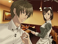 This doesn’t exactly please his ex-g/f celebrity Risa. Since in every route Akari gives the manwhore a suit, the suit she gave him was a massive improvement over his “my 70s prom” thing he was sporting most of the game. In December he lies to her and says he likes her giving her a bracelet. He says he will keep it a secret and so they secretly meet at a bar run by his uncle. A week later she overhears him outside Gorgeous speaking on the phone to someone saying that he only started dating Akari to get Risa off his back. Akari hears this and gets upset. She says she shouldn’t have expected anything from him so she returns his bracelet back to him and says goodbye. She continues acting like his “customer” and she starts to look a little prettier and wears a skirt. That’s when Kaname’s heart suddenly goes キュ━.+゚(○゚Д゚○)゚+.━ン and he realizes what he’s lost and becomes restless. Finally in February he asks to see her at the bar and admits that he’s really fallen for her and didn’t realize it until she told him goodbye. He then asks her to call him by his real name (Kaname) and from then on he doesn’t care who knows it, but he’s all raburabu with Akari. Even for Valentine’s day he doesn’t care that some cameraman is filming him feeding her chocolate cake 😆