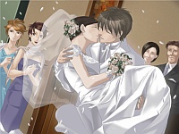 Akari gets desperate and one time while he’s cleaning she takes his ring and hides it. For a few days she notices Satoru is going nuts without it and she returns it to him apologizing. She says she realizes that there’s no room in his heart for her and she quits her job at the cafe. Ai’s spirit shows up and tell Satoru that just cause she’s dead doesn’t mean his life has to stop! Akari runs back to Satoru because she can’t get over him and Satoru realizes that without Akari there was an emptiness in his heart too. He tells Akari that if she doesn’t mind waiting, he will need some time. Akari agrees and says she will wait as long as it takes. A few months later they go to the ocean together where Satoru says he will try to move on with his life. And so 5 years later, Satoru and Akari are getting married. Akari says she was going to wait like 10 years for him so she’s surprised it only took 5 😆 Daww. Ai shows up 1 last time to say goodbye and tells Akari to be happy as she flies off to heaven. Well anyway I thought it was a really sweet route even if a bit wacky with the dead ghost girlfriend. (*´ω`*) I hope my rage notes at least make it easier for anyone trying to play Satoru’s route from now on as well lol.