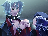 Franken Wristling – Franken’s route is very overlappy with both Inukai’s and Hellsing’s so there was a lot to skip. But basically after he escapes from Murasame’s lab and goes to live with the Draculairs as a butler, it turns out he was actually sent there by Murasame as a spy. Murasame also attached a self explosion device on him so that if he were to betray him, Murasame would blow him up. Fortunately, Vlad noticed this and he disabled the device. Franken fell in love with his ojousama (god I love ojousama dudes…(*´д`*)ハァハァ) and he decided to instead betray Murasame. He told him over his bracelet (contact device) that he will no longer be coming back to the lab. Murasame rages and promises to get his revenge. On Halloween Murasame comes and brings his army of Xclones to attack everyone, and destroy Franken. Franken goes crazy fighting them and uses a lot of his powers. Even though Little begs him to stop, he says that he doesn’t want to go out all boring because she will then forget about him. He defeats all the zombies but then his body starts getting weaker over the next couple days and he ends up sleeping in bed. From here you basically have 2 options (well if you’re playing PS2 it’s 2 options.) In the original PC end (where this was the only end) Little doesn’t suck his blood and he basically dies a couple days later. Some time passes and she finds a letter from him expressing his feelings of love for her along with seeds to the flowers that bloom once and then die. He had taken her to this flower field in the past one time. I got such a huge lump in my throat even though I played this end after the happy end (´;ω;`). Fortunately in the PS2 ending he got, if Little chooses to suck his blood, it successfully turns him into a vampire. Before she does though, he kisses her and says he loves her. So then some time passes and it’s now Fran’s 5th birthday and he plans to go visit the cemetery to say his prayers to all his dead “brothers”. I’m so glad he had a happy ending. If I only got to play the PC Fran end I’d prolly be crying a river TAT. Oh, Franken’s also good at baking pastries :3.