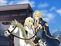 Lailous Seto Reiford – Laious is the king of Evil Land (lol nice name.) He’s assigned to be Rumina’s fiance so that Evil Land and St. Foria can join to be 1 massive Kingdom. Laious is kind of annoying at first always hitting on Rumina but then shit hits the fan and Shion goes batshit and like destroys Evil Land completely. Because Evil land is in ruins he starts emoing saying how he’s no longer fit to be Rumina’s fiance. Ash hears of this and starts bitching about how he’s just lying to himself and how he loves Rumina as well and he’s not gonna give her away to some loser. So then the 2 of them have a sword fight (that sounds like forks and knives smacking against glass 😆 )and Ash wins…but at least he gets Laious to admit that he loves Rumina. Ash walks out all cool saying “damn I won the battle but lost the war!” Poor guy TAT. So then Laious goes off to fight Shion and is lost in battle. Years pass and Rumina spends most of her time emoing alone in her room. Since Evil Land is destroyed a lot of people start moving into St. Foria. Meanwhile Laious is actually alive and he wants to change the country for the good so he frees all the servants and works amongst them. The sad part is – he’s lost his sight in the war. He’s blind but to this day he still loves Rumina. Rumina finds him talking about her to some kids and she cries a river. She comes to him and introduces herself as his wife. He asks if a blind guy like him is good enough for her and she says yes. (´;ω;`) What the hell! What kind of ending is this ugh. I didn’t even bother doing the bonus end because it was just too depressing after the last one -_-;.