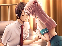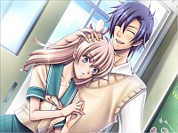 She doesn’t think she should go after Kazuto but then Etsu comes into the nurse’s office telling Aki that she was rejected anyway so no problem! I was kinda touched at this whole friendship of theirs since Etsu seemed kind of a stupid character most of the other routes 😆 They both cry and then AKi goes to the rooftop. She’s stopped by Reedy who tells her he’ll be taking her back to Meldishia. She says she refuses because she likes Kazuto and Reedy’s like “oh finally you admit it” and he uses the shell aura that he found that she dropped and removes the seal. Ruka then randomly confesses to Reedy saying she still loves him and then the 3 of them return to Meldishia while Aki runs to Kazuto. While she’s too busy mumbling her feelings, Kazuto tells her that he likes her and then she admits she likes him as well and then they kiss~. In the epilogue everyone forgets about Reedy & Co. except for Aki. (´;ω;`) She and Kazuto in the meantime are all rabu rabu and getting all いちゃいちゃ as usual. Eh well I thought Kazuto was cute to be honest. I usually don’t like the delinquent characters but he was just too adorable 😆 The whole Etsu drama just felt too dragged out though.