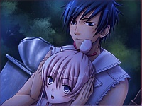 She takes a love potion from Ruka but is too chicken to use it and ends up spilling it on herself before running away from him. He brings her bag to her place and then feels that she has a fever so he places her into a futon. After some frustration he finally tells her directly that he likes her and leaves. The next day she tries to apologize to him but he tells her to forget what he said. That night Ruka tells Aki that the love potion was just a placebo and that she really likes him after all. Finally Aki takes the shell aura to the shrine (because if she falls in love with another guy and uses it, the contract will be cancelled.) She finds Hiroya there and confesses. He trolls her some more but then tells her he likes her again and kisses her. Reedy cries a river while Ruka slaps him to STFU and get over it. (Poor guy.) So in the epilogue Aki is at the seaside and says her goodbyes to Reedy (who has to get beat up & dragged back home), Norlette and Ruka. Hiroya then shows up and they go near the lighthouse and make out \( ^o^)/ . Man the entire route just felt like you were dating Izaya from DRRR! XD Hiroya was such a delicious troll but then he’d like turn around, say thanks and blush and oooohh my heart. The route was so much cuter/better than Reedy but also possibly because I got to skip through all the completely irrelevant scenes with other chars…so the game felt like I was play solely for Hiroya. That’s a pity I guess as now I wonder what Reedy’s route would have been like if I only got to interact with him and not…everyone else.