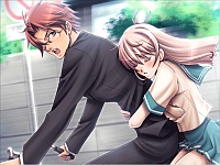 Reedy Vorpal the 7th – Well Reedy is our prince alien from Meldishia. His sidekick (or should I say caretaker?) Norlette helps Aki with obtaining the tools she needs to collect auras but says she must do this on her own or the potion will not remove the seal off HER. The problem with Reedy is that he’s adorable as hell and I really love him, but he was absent at least halfway through his route. Most of the game kept jumping between gags of various characters so I really didn’t get to spend too much time with him except at the beginning and near the end. They had cute scenes like going to the haunted house together and he took her to Meldishia to show her his edible roses. Reedy also enjoys flowers because its a hobby that passed on from his older brother who disappeared. Anyway Reedy gives her a potted plant that he names Georgeolina after his brother. There’s some old jiji named Yosshi who is Reedy’s grandpa. He had set up Reedy with a girl named Ruka, also from Meldishia. She was originally Reedy’s fiance but I guess he dumped that ho so now Ruka came down to earth to bitch at Aki that she took her man ┐(‘~`;)┌. So it takes Aki like the entire game to realize that she likes Reedy because she’s too busy thinking about her first love from when she was a loli. So then randomly on the beach one night she meets with Reedy and they admit their love and kiss (it was so rushed/random I felt nothing.) She then uses the shell aura she made to make that wilted Georgeolina plant bloom yippie? In the epilogue Reedy and Aki are living together in her apartment with Norlette nagging them (cockblocking too) daily. Ruka also comes back as a transfer student once again. Reedy has decided he will be staying on earth until he becomes more manly before he decides to get married or something. Honestly I really liked Reedy as a character but the lack of scenes for him in his own route was pretty pathetic.