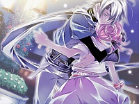 Alvand – So I started with Alvand because hey he’s the knight guy, he will do the damage and La Primavera recommended that when you do the white or dark route that you have at least 1 knight guy in your party to increase maximum damage capacity. Alvand is the “princiest of princes”. Basically let’s face it, he’s like the typical oujisama on a white horse you find in every fairy tale and every other word out of his mouth is “…Ahhh!” (or during battle UKERU GA II!) In the normal game plot, Alvand is supposed to marry the princess Charlotte who obviously is programmed to be in love with him. This all changes when Nina comes into the game as almost like a virus and disrupts the programmed data…because now Alvand finds himself falling for the wrong person! 😆 In the dream sequences Nina has, Alvand turns into a sweet smooth talking host like porn flower man from Last Escort 3 プッ(※థэథ)∵.*.∵(it’s really a pity we didn’t get any CGs during these sequences.) During a festival in one of the green towns Nina wanted to go with him but Charlotte snagged him first. Afterwards Charlotte confided in Nina that her love for Alvand appears to be one sided (gosh how could this ever be!?) That night Alvand tells Nina that if he is able to he wants to put her first priority to take her to the festival next year instead. There was also a cute scene of them dancing in the moonlight where Nina had wished that she could be with Alvand but she was not programmed that way! So eventually you will get to the route split. I did “Another End” first. In this one , you don’t tell Alvand that he’s a video game character.