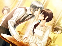 So as usual in ED 1, Runa & Francis return to her world. Francis becomes a waiter at a cafe and since he’s hot he’s popular so Runa gets all jealous. He tells her to get over it until he sees some dudes hitting on her. He then rages at them that he’ll smash their heads in if the don’t GTFO and they run away. Francis then kisses her in front of everyone and asks her to wait for him until his shift’s over (*´ω`*). In ED2 the twins are so happy the tree is saved they make a love shack for Francis & Runa to live in. Runa becomes like Francis’ housewife or something and he gets to come home and molest her while she’s cooking 😆 …oh well those kissing sounds by Sakurai were hot (;゚∀゚)=3ハァハァ. The bad end gives a CG so I went through it and basically Francis gets executed and asks the twins to wipe Runa’s memory of him. He leaves his glasses to his sister who passes them on to Runa who has no idea why but she feels they’re special. Sigh. Why they gotta have these depressing bad ends. ;_; Anyway surprisingly I liked Francis a lot! He seemed so boring at first but then all of sudden |萌|・´∀`・)ハァハァ 萌えぇぇ↑ So yea if Francis bores you at first just give him some time hehe.