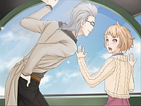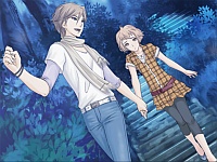 In the Normal end Ten & A4 show up saying they’re taking Kei & Manami on a trip around the world. They all go to the beach on Ten’s private island and Yakumo pushes Kei into the sand out of jealousy for talking to Manami. Arata & Kei then talk about being oniichans while Arata buries him and draws weird sand images that make him look like an octopus 😆 In the special story Nachi & Ten are fighting (probably over Kei) and Kei has to break it up. In append 2, Kei proposes to Manami to marry him and she agrees. However somewhere else Nachi is spying on them through a telescope while Yosuke calls him a hentai 😆 In append end 1, Kei says that in 4 months he’s gonna move in with Manami and wash her hair every night whether she likes it or not. Lol I didn’t know Kei had a hair washing fetish?? @@; In Mizuki’s story he helps Manami pick the aquarium as the place for the field trip and while they look at fish Mizuki leans his chin on top of Manami’s head while Toge sticks to the glass & watches the fish float by. Anyway Kei definitely had his moe moments rofl. The first half of the route he was really quite annoying though. It seems like he’s the shikkari seito kaichou but he’s really kinda gullible and lacks common sense that you can tell Nachi has. Still once he started getting dere the route became a lot more fun XD.