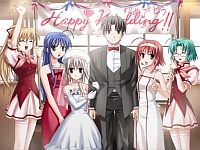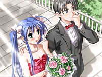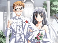 Some years later when Hikari is in kindergarten she looks like the other Hikari clone (lol see Nozomi end 1.) If you don’t make the promise with Hikari, Makoto instead decides to use his power to neutralize the power of the shrine tree or some crap which then requires Makoto to intake all the pain that Hikari caused by killing people over the last 1000 years or something. So then Hinata & co. come to help but when Hikari asks them to stop Makoto they’re all like “lol no thanks”. Bastard deserves it for treating Minamo like crap anyway. The whole time Hikari’s like “I don’t deserve this, I killed all these people, so I should be the one to disappear” and everyone’s like “we want you to be happy!” Good question Hikari, I wish you would die too lmfao. When she tries to get Minamo to understand her feelings Minamo slaps her yelling that “you think I can forget you and just be happy with Makoto!?” Yea it’s called Hikari ending 1 ( ´_ゝ`). Man lol the drama just got so bad here I was rolling my eyes 🙄 While Makoto’s soul gets absorbed into the wind god, he gets words of encouragement from his and Minamo’s parents. Makoto succeeds but seems like Hikari can’t be saved until he hears the voice of her father (who I thought was her brother but alrighty then.) So I guess everything works out and in the epilogue Makoto marries Hikari and since her body’s been in loli form for 1000 years Makoto looks like a massive pedobear. For their honeymoon, Makoto & Hikari went to another town since she never left that other town because she was its caretaker. They end up in some corn field where Hikari starts drawing a picture with Makoto in it. Blah whatever Hikari. I think this entire thing was a PS2 only addition and seeing how I hate Hikari and I won’t magically “forgive” her for her sins, I am not amused. I also love how everyone but Minamo & Hinata get a wedding end. Oh wait Minamo got a happy end in Hikari’s original true end….but that doesn’t really count cause in my eyes it’s still sloppy 2nds! Screw you Minori!