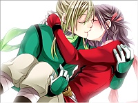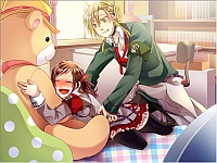 That night Kureha decided to go with eraser-kun to the science lab by herself, and almost gets her ass kicked by Wakamoto-bad guy Duke, until as expected, Ryuuichi comes to save her. The Duke then brings out Green & Yellow rangers who are hypnotized to attack Ryuuichi. He says that he cannot attack his buddies, and especially not the girl he loves. He then apologizes for force kissing her but says that his feelings for her are true. The other 2 rage at him and Duke tells them to attack Ryuuichi, but then just in time, Eraser-kun wakes up and tells them what to do to defeat the bad guy. Blue & Red combine their Suzaku & Seiryuu into an EPIC GATTAI and defeat the bad guy! But then before Duke disappears he suddenly says he’s in love with Kureha and wants to confess his love to her lololol. So then Ryuuichi’s like NO BACK OFF SHE’S MINE ( ಠ益ಠ ) so Mr. Science Lab Human Anatomy Figure says byebye and disappears. In the Normal ending, he says he wants to organize his feelings and cancel all his plans to go abroad, before officially asking her mother permission to date Kureha. The Good End route opens an extra scene where she finds him fallen asleep in the student council room and she wants to poke him but before she gets the guts to do so he wakes up ヾ( 〃ω〃)ッ キャーーーッ♪ In the actual ending they dance at a ball together. In the true end, he confesses to her at night in front of the student council room and says he’s fallen in love with her since the first time he saw her on the train that day. They both end up smooching and Kureha cries out of happiness lol. Daww Ryuuichi was so cute. Well I was kinda pissed when he had his wangst moment, but at least he bounced back out of it and the route was still fairly enjoyable. I prefer Kon-chan as a tsundere prince than some emo whiner ugh, had enough of that the last game I played ( ´_ゝ`).