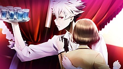 As usual Chihiro tries to go out to Kyouhei and Jesus stops her, knowing she’s just going to suicide. She says she will go anyway, but then Jesus hugs Chihiro saying that when Kyouhei left him, he was lonely and now that she’s replaced that loneliness he doesn’t want her leaving him as well. ||萌||ョ´∀`。)萌えぇ~↑ She then makes a pinky promise with him that he won’t kill Kyouhei in order to save her. Jesus however goes to kill Kyouhei the next day to get some of his blood for Chihiro, but she comes to stop him soon as he runs into Kyouhei. Since the virus weakens her, she just falls on the ground while Jesus stabs and kils Kyouhei. He then kisses Chihiro giving her Kyouhei’s vaccine blood which cures both of them, and then he tells her to be by his side forever. (*´ω`*) In the epilogue, Jesus and Chihiro visit Kyouhei’s grave and afterwards return to his bar. Chihiro tells him that since he doesn’t have a house, she’ll wait for him at the bar from now on so that he always has someone to return home to. This really turns him on and he pushes her down on the couch and makes out with her. (*´д`*)ハァハァ Man Rejet just read my mind. I was like PUSH HER DOWN ON THE COUCH— OH HELL YES キタ━━━(゚∀゚)━(。A。)━(゚∀゚)━(。A。)━(゚∀゚)━━━!! So anyway, much better end than the last one e___e… The ending shows a brief video that the President left behind saying “oh if you’re watching this it means I’m dead lol! I hope this world burns in hell HAHA.” Well thanks to Shinnosuke being ruined for me, it’s no doubt that Jesus is definitely my favorite of Dark Cherry, and possibly the entire franchise since aside from his and Shinnosuke’s routes, nothing really made me きゅん. In fact in Super Mint & Honey Milk I think I was pretty bored out of my mind most of the time so this was a nice refresher xD. I was like (*´д`*)ハァハァ in all of his CG clicks. Damn Namikawa…he needs to do more roles like this… or maybe not since my heart won’t last (*ノ∀ノ)イヤン. It was nice to see the whole Vaccine/Virus thing resolved, but it’s almost like a sad love story between a mad scientist and the woman who loved him. Kyouhei and Itsuki were just victims of their heartbreak.(´・ω・`)