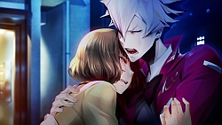 In the epilogue Jesus attempts to calm his violent ways by getting into less fights and saying “I’ll kill you” less. When Chihiro starts teasing him, he starts blushing & stuttering and saying ころころ (roll around) instead of kill xDDD When Chihiro starts laughing he pushes her against the wall and kisses her saying this is what she gets for getting out of her place. xDDD ヾ( 〃ω〃)ッ キャーーーッ♪ In Jesus’ true end, it shows how Kyouhei and him met (and Kyouhei looked normal…not a crazy killer lol.) Jesus realized that he and Kyouhei had the “messed up” personality thing in common and just like with Chihiro, Kyouhei was able to tame the wild beast lol. So on day 5, Kyouhei attacks Chihiro and then Jesus comes to save her, but he says that he only stayed with her because he knew Kyouhei would come after her. As he fights Kyouhei he keeps going “what the hell happened to you!?” as Chihiro starts hearing voices. Yuuto then comes to pick them up telling them to get in the car, and while Jesus refuses at first, seeing Chihiro in pain he gives in XD. Yuuto gives us the usual Creeping6 speech (which thankfully they let me skip through this time around) and then elsewhere, Mother goes to Woodlink, shoots the President and kills herself. There’s another flashback to when Iori’s sister got hurt in the building accident, and it was because of the kimodameshi traps set up by Kyouhei and his college buddies, she got the liquid splashed on her. When he tried to apologize to shota Iori, he of course told him to GTFO and that he’d never forgive him. On top of that, Kyouhei’s dad then tried to cover up the details of the event, since it was the police’s fault and he refused to let Kyouhei come to the hospital anymore or discuss this event with any of his coworkers. It was just around that time when Kyouhei met Jesus, who was in a fight with some random guys as usual and that’s where it all began. Also the liquid Itsuki was splashed with, is apparently from experiments done by President/Mother and Kyouhei found it one day. He found out that a human body is needed in order to put the vaccine in action, and thinking he could save Itsuki, he decided to give his body for it..and that’s how he turned into the Killer Nightingale.