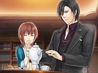 Maximillian Spavier – Maximillian’s last name looks like “Spyware” to me so for all I know I could be butchering it but whatever let’s roll with it 😆 He’s the mr. srs bzness captain and his seiyuu is an ossan so he’s like a major miscast and it’s very offputting. He’s so hardboiled and done a lot of hard livin’ in his time that he can barely sleep at night because all the war memories just flood into his head. In the bonds route, I dunno what the hell gets into Kanna’s head but thinking she can relieve his stress, she comes into his office one day and then pokes him from behind. He’s like Σ(Д`|||ノ)ノ and in revenge is like “shut up woman, if you want to make me happy then kiss me.” HAHAHA WTF. Then he’s like “j/k” and tells her to GTFO before he changes his mind. XD In this route a man named Douglas informs Kanna that her father was a very important friend of his and that he designed weapons of war. Later on her father married her mother, betrayed the country, and then they both died. He then tells Kanna that she was not supposed to be born and that her existance is the cause of the war. I guess Maximillian gets the picture that she’s feeling down, and asks if she wants to take a break. Kanna asks if she can spend a day in his room イヤン☆(*´∀`)σ)))))*3゚),・´.、 and that’s where she discovers that he’s never poured tea for himself before lol. They change out of their uniforms into some casual clothes but of course for Maximillian casual means hot host club suit 萌━━━━ハァ(* ´Д`)ハァ━━━━ぇ↑↑ The tea that he pours himself apparently is gross so instead he grabs the tea that that she poured herself and drinks out of her cup. When he returns the cup to her she’s like “no its ok you drink it” and he’s like “what you’re afraid of indirect kissing” プッ(※థэథ)∵.*.∵ Omg what is this adorableness all of a sudden?? XDDD