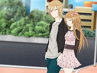 Haruhi – While Marin is gone to school Haruhi gets bullied and eats lunch alone. His parents then abandon him and instead Marin’s parents adopt him as their son to replace her. (○´゚ω゚`):;*.’:;ブッ Nice family lol. He’s a trap but he secretly harbors feelings of love for Marin and so after summer vacation he climbs into her suitcase and comes to Planets with her XD. When they get there he surprises everyone and to prove that he’s a boy he flashes his manboobs. When doing Haruhi’s route the night before she goes back to Planets, he says he’s happy that she has boys she likes but says he misses when it was just the 2 of them. There’s a flashback of when they were in elementary school, the girls would make fun of Marin for being too masculine and Haruhi for being too feminine. One day after playing when they get dirty Marin suggests they both take a bath but Haruhi then reveals that he’s a boy and he only looks girly becuase his parents wanted a daughter. They both decide not to keep secrets from each other from that day on and become best friends. And so that night Marin lets him sleep in her bed just like old times (even though he’s 13 and she’s 15 now lol). Before Haruhi returns to Yasuragi he gives Marin a star bracelet so that she can remember him. After Marin returns home and is unpacking, Haruhi comes home and he actually looks like a boy, wearing a boy’s school uniform. He says that he suddenly got a growth spurt and the girls uniform didn’t look right on him anymore so he decided to act like a male that he is xD. He also admits that his parents wanted a girl, not a trap so he got tired of trying to please them. He then kisses Marin on the cheek and says he loves her but Marin says that she accepts his feelings but doesn’t quite feel the same way since he’s a bit younger than her. Haruhi then goes on to say that he’ll get older and marry her ||萌||ョ´∀`。)萌えぇ~↑ . Lmfao aww that was so adorable. I kinda wish there was some wedding epilogue or something xD.
