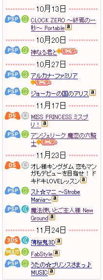I grabbed this schedule off Girls’ Style and as you can see if its not PSP its DS and MULTI is PSP and DS. Not a single PC release in sight! I decided to just give in and I bought myself a PSP this past week. Unfortunately that means I can no longer broadcast my otome gaming. I was unable to get RemoteJoy Lite to work on my Windows XP Virtual PC and I’m not going to disable driver signature on Windows 7 because it’s unsafe especially since I broadcast on a daily basis. While I still have a hefty PS2 backlog left, a lot of PS2 to PSP game ports have additional content/scenario/CGs added on to them. Therefore a game I may have originally intended to play on the PS2, I want to maybe play it on the PSP instead. The good news is I can take screenshots so I’ll keep my gameplay tumblr updated, but my broadcast will be few and far between and eventually I will probably stop broadcasting all together. I’m sure there will be PC game releases in the future but a lot of them will probably be R-18 and well I’m rather tired of that genre so that’s another reason I won’t be playing too many of those.