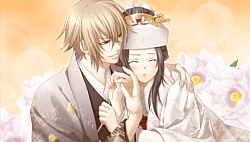 Kazama Chikage – Chizuru has a dream in the morning that she’s marrying Chikage and he wants her to have 10 of his babies 😆 xDDD After she opens the box & goes into chibi mode Chikage shows up saying that she should just be his waifu and drags her through the doors of mini games /(^o^)\ナンテコッタイ. They run into Shiranui and Chizuru begs him to save her so he has a duel with Chikage of Rock, Paper, Scissors. Despite winning, Chikage still beats him down and they move on to the next room where Amagiri is. He’s pissed off that Chikage’s been dumping all his work on him while he goes prancing around the Shinsengumi & Chizuru. In this mini game you have to get Amagiri to yell at Chikage and call him a useless bum to get him to be a better demon leader lol. After being defeated Chikage just says Chizuru is an Edo woman and she’s just being tsundere so Amagiri leaves “the two youngins alone to do their thang” xDDD. They go to the next room where they run into Senhime who wants to save Chizuru from Chikage, but he tells Chizuru to battle in his place. They have some kind of a fan throwing battle and Chizuru is so focused on it that she wins accidentally meaning that she has to marry Chikage xDDD. /(^o^)\ナンテコッタイ When they arrive in the next room, the Shinsengumi are having a feast because they received wedding reception invitations from Shiranui lmfao. xDDD So then Chizuru wakes up from her dream, and when she goes outside, she runs into Chikage. They have a peaceful chat by the evening cherry blossoms but then the Shinsengumi dudes show up raging (´・ω・`;A)Sigh way to ruin things honestly lol. Chikage’s like “whatever I’ll be back later” and runs off.