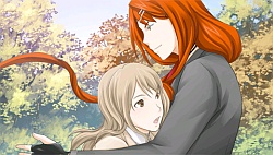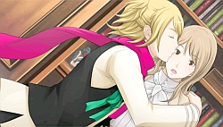 Later on as they leave the park they talk about how anyone who marries Kiyo has to be a tough woman and Kiyo says Yuri’s pretty tough and that she’s on his candidate list – but Yuri’s too busy lecturing him to notice this xDD;; Before the dance, that scene where Yuri runs into the glass vase and hurts her hand and Shun runs in blaming Kiyo for it despite Yuri trying to tell him that it’s not his fault. So then they get in their fist fight the moment Shun calls Kiyo a chibi (´・ω・`;A). I guess Shun gets even more enraged when Kiyo starts licking the blood off Yuri’s hand 8D;. As usual the scene is same as in Shun’s route with the ship but this time Yuri flies there on Kiyo’s back as he skateboards on deck. After the thieves and the Mayor are caught, the Deputy Mayor’s bombs start going off and everyone runs for it. After they escape, Yuri meets Kiyo in the park and he hugs her telling her “not to disappear” until she sees him “shine” and that everything he puts effort into is obviously for her. She of course doesn’t get it but he tells her to continue being thickheaded until she realizes her feelings too lol. In the Perfect End, Kiyo gets tired of waiting for Yuri to realize her feelings so he confesses to her and when she starts crying he licks her tears off. ⊂((〃/⊥\〃))⊃いやーん As usual Yocchin does his hot voice (;゚∀゚)=3ハァハァ. If only Kiyo always sounded this way lol! In the Dream End, Yuri makes some horrible nabe as usual and everyone freaks out. Kiyo just wants to tease her around, and he never eats her food so he doesn’t care xD; In the Normal End, Kinugasa puts the moves on Yuri and says he loves her. After playing Amnesia I kept having flashbacks to Ukyo for some reason with Kinugasa lol. I guess putting up with Kiyo’s crap was worth it for his perfect ending and all his embarrassing scenes but again, no kiss CG here either.