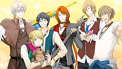 Sendou Kiyoharu – I did Kiyo next because it seems this game has the story setup in “pairs” where the final scenario pretty much has the guys split up into groups and each group shares the same outcome…so yea needless to say Shun & Kiyo were together. As usual he spends the route playing pranks mostly on Shun as well as Yuri and laughing like a hyena. In the first mission they have to examine an abandoned building thats full of traps. Turns out a shota is there keeping some abandoned puppies instead. They decide to help the puppies find a home in order to let them destroy the abandoned building without thinking its haunted. In the second case they deal with sleep walking Yamada but to catch him Kiyo throws a freaking rolling pin at the poor guy’s head 😆 In the third case Kinugasa lies saying he lost a hair clip but because of this Kiyo gets frustrated that they can’t find it and gets really immature playing really bad pranks on Yuri. After that the Mayor comes asking them to protect their paintings fromt he art thieves. That night thief Casa Blanca, aka Kaori uses some sleeping poison and puts Yuri to sleep for 3 days as the fail to catch them. Kiyo gets so depressed that he couldn’t protect her that he ends up not working and wandering around in depression. When Yuri finally wakes up she goes looking for him but she later finds out that he was actually nursing her back to health, even though others offered to take turns, he refused to let anyone else but himself do it ( ≖‿≖). Later on Kiyo apologizes while blushing like a dork |萌|・´∀`・)ハァハァ 萌えぇぇ↑