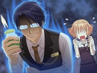 I mean honestly are you that desperate to get drunk that you drink some nasty left overs ew. (≖_≖) One day he overhears Mei babbling about how she wants some new accessories like necklaces or bracelets but then she goes on how she can’t wear them while working anyway. He then grabs her and takes her to an accessory store, and gives her advice on choosing jewelry because apparently he can suggest jewelry like he can suggest wine lol. During the whole restaurant buyout drama, he tells her to clear her mind and the best way to do this is by grabbing her & kissing her. (♡´౪`♡) He then makes her go completely blank by saying he loves her. She then confesses to him too but he just goes …fuun.. and then has a dorky smile on his face while she goes to serve customers. And so 1 month later, Charles quit the restaurant to focus on his wagashi making. During their break he glomps her from behind and says it’s relaxing…BUT WHERE’S MY REAL KISS CG. That half assed kiss CG doesn’t count!! All the other charactes got one what is this discrimination (ノಥ益ಥ)ノ 彡┻━┻. Sigh yea that + the drinking customers’ wine kinda put a damper on this route for me…even though I thought Shizuka was really cute and I loved his snarkyness. Oh well (◞‸◟ㆀ)ショボン.