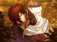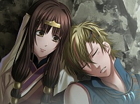 After they’re resting in town, Gyoku tells Genjou that the reason he’s immortal is because of the Kyoten’s powers from before. He also then tells Genjou that he likes her for who she is right now, and doesn’t compare her with his “master” from 500 years ago. After they return to Tenjiku they also rescue Kinkaku & Ginkaku and offer to even save Ranfan. So then they get to the Kyoten room thing and Ginkaku sets the room on fire and starts wangsting about his duties and Ranfan and Kougaiji and sheit. ( ´_ゝ`) Gyoku decides to grow a pair and use his water powers to try and put the fire out. In the meantime Goku & Youzen are running around hell trying to find where Ranfan has been captured. So then Kougaiji shows up and farts out his flame throwers until Genjou finally uses her priestly powers and thanks to the Kyoten, kicks everybody’s asses. Just then Gojou, Hakkai & Miss Aratits show up as reinforcement to finish the guy off. Gyokuryu gets hurt really badly and then his “immortanlity” seal disappears. He’s on the verge of death but Shaka comes down and tells Genjou that she can save his life by limiting Gyoku’s life to be as long as her own. And so some moments later, Gyoku wakes up and finds Genjou who’s like “Congrats dude you’re a mortal human now!” (*^ω^)ノ∠※PAN!オメデトクラッカー♪ Gyoku is so happy he cries and says he loves her and will be with her forever and ever~. In the epilogue, the two of them are travelling together helping random people out while they continue their platonic relationship (oh yay cause lap naps are so randy!) Wow yea this was a huge disappointment. The route just kept dragging on and nothing concrete actually happening….which is a shame because I feel they could have done so much with this type of character personality. Oh well this must have been one of those “we don’t give a crap about him just moe over his stereotype” Otomate stories….