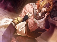 And so in ending 11 which is a bad end, Hakkai and Genjou both get stabbed & killed by Nataku. That’s what happens when you don’t stalk Hakkai in chapter 8 :lol:. So yea if you go stalking him, he reveals that he has like 12 siblings and he used to sew clothes for his little sisters. 萌━゚☆;。+(*pq′ー`)+。;☆゚━萌 When they get to Tenjiku, before she can take the Kyoten, Hakkai hugs her saying that he wishes she never came here. Suddenly she blacks out and wakes up alone in a small room. Suddenly Hakkai shows up with his hair down and in some kind of robe outfit telling her to eat up because she’ll be staying here for a while. So yea pretty much lock up time while Hakkai has his inner battle between loyalty to the bad guys or his love for Genjou. He then claims that because Genjou is the Sanzou Houshi, she will “save the world” but it will not “save his homeland.” So then he like drugs her up so she can’t move and he carries her to the basement of some tower to perform the Kyoten ceremony. Gdi is this Toma or some shit? Man I guess I never realized how many “locking you up” games Otomate really had until Amnesia made it blatantly obvious. While carrying her down, Genjou starts crying and finally when he gets down to where the ceremony will be he finds out that they plan to pretty much exchange her life for “reviving” their country.