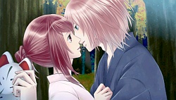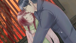 She goes to try and strangle Hisoka but then Tobiura the troll flies doing saying that there’s a way to turn back into a human but a blood donor is required. Since Shizuka’s a youkai she can’t donate her own blood so he flies away laughing. She goes to him a few days later asking him to give her details of the turning back to human ceremony and then decides to perform it on her own. She’s doing it to turn Kyou back into a human but Hisoka tells her to stop because then when he’s a human again she’ll be lonely. He then grabs Shizuka and kisses her saying what can he do to make her his. She gets pissed and punches him away and he’s like “I’ma kill you” and then is like “whatever you can go turn him into a human, and then he won’t be around to cockblock while I hit on you \( ^o^)/ “. When Kyou finds her doing the ceremony she doesn’t tell him what it is but he tells her to be careful with all the fire. He then recalls a story about the time he spent with his family and brother and Shizuka feels even stronger that he needs to return to being a human. As she sends him off back to the human world, she gives him 1 last kiss to suck out his remaining youkai powers. She then says goodbye to him and he disappears from her sight. (´;ω;`) Some months pass and one day while she’s sleeping on the roof he comes running looking for her saying that he can’t forget about her….but he can’t see her because he lost his youkai powers. щ(ಥДಥщ) Shizuka then comes over to him and hugs him even though he can’t see her figure but he smiles anyway…..ウワァァ━━━━━。゚(゚´Д`゚)゚。━━━━━ン!! Does this mean I am to assume that in the end she’ll probably end up with that psychopath Hisoka anyway since eventually Kyou will have to just move on with his human life?? This is the most cruel ending ever! How could you do this Quin Rose! This is supposed to be the true end orz what a horrible way to end the game….. (◞‸ლ)