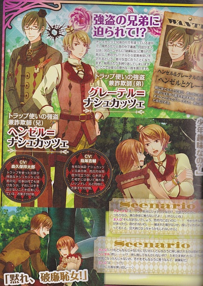 Hansel is a MASSIVE TSUNDERE. LMFAO I AM SO EXCITED TORIUMI IS VOICING HANSEL AGAIN dsfdsfsd Y⌒Y⌒Y⌒Y⌒Y⌒Y⌒(。A。)アヒャヒャヒャヒャ!! So anyway this made my day lol! Also Kishio said in his cast interview if you play this game you will get a chance to experience some リア充 hahaha XD.