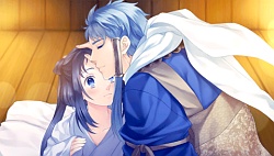 Minamoto Yorimitsu (Raikou) – So following the sickness pattern, in Raikou’s route she’s waiting for him on some date but he’s late and because I guess it’s cold she gets sick. She ends up staying at his place and being taken care of by him and his sister Yoriko. He starts freaking out and blaming himself for it but then ulitmately just feeds Sangou some porridge in bed (but of course he spills some all over her face from shaking too much.) There’s a flashback of Chibi Raikou & Chibi Izumi battling it until Izumi tricks him and finally defeats him. Raikou then protects Izumi from some kind of arrow shower and injures himself. Sangou makes Raikou some dinner later on and then he’s so happy to eat it because normally he has to do taste testing/sniffing Izumi’s food for poison. After the balls tripping utage thing ends, Raikou’s hair magically becomes short again and then after the Rei revelation thing, they get all cuddley in the moonlight like all other routes. Sangou asks Raikou to train her and when he starts groping her and realizes what he’s doing he starts freaking out. So then Yoriko shows up and complains that his marriage plans with Sangou aren’t going anywhere. When Raikou goes to ask permission from Seimei, he tells him that Shikigami’s lifespans are short and she can disappear at the end of her contract. Seimei tells Sangou then to sit her butt down for the next 3 days at home and though she misses Raikou, fortunately Raikou decides to stop over the next evening. He says he will do anything she wants him to and so Sangou asks if he can come visit her every day while she has to sit at home. After visiting her on the 3rd night Raikout starts bawwing saying that this evening is Sangou’s last day of life and that her contract with Seimei will end and she’ll turn back into a paper doll. So then Seimei comes back finding the two of them bawwing and he’s like “yea our contract is over…as my shikigami, so yea you can have her now” \( ^o^)/ . So then Sangou & Raikou spend their evening alone getting ichaicha…or so they thought except that Seimei, Izumi & Yoriko were spying on them the whole time xDDDD. Raikou’s route ended cute but it was mostly flashbacks with him and Izumi so it felt a little underwhelming to be but he was moe most of the time I guess.