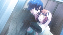 The next day Ren comes over to talk things over and apologizes for not taking into consideration that Haruka might be upset that he’s running around with another woman. YA WELL MAYBE IF THE 2 OF YOU STOPPED TREATING YOUR RELATIONSHIP LIKE SOME MIDDLE SCHOOL CRUSH YOU WOULDA BEEN MATURE ENOUGH TO REALIZE THAT. щ(ºДºщ) I find it hilarious too that the moment miss big tits comes on screen, Ranmaru suddenly drops off the face of the earth and when he shows up thereafter, he’s actually reasonable and gives Haruka advice. Umm what? Sigh this Seira acts like a bitch to Haruka while Ren tries to comfort her spin cycle continues for a while until he’s finally done with his movie. But then sadly Haruka continues moping around and Ren has a brilliant idea of RESETTING THEIR RELATIONSHIP ONCE MORE! Seriously dude this isn’t a computer you can’t just “reset” when it hangs or freezes on you. They go to Saotome school gates where they first met and then performs his song for Haruka saying that he loves her etc. Love End: After the performance, Ren and Haruka make out backstage and then Seira shows up and tells Haruka that she admits defeat. Haruka watches Ren’s movie and tells him that the love scene was shocking and she’s “jealous a bit”. WHY ARE YOU JEALOUS DID YOU HAVE A MEMORY LAPSE OF WHAT YOU DID IN REN’S ROUTE IN REPEAT!? щ(ºДºщ) And then the two of them “sleep in bed together” and “pretend they are 2 childhood friends” WHAT IS THIS CERO A?!