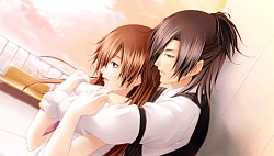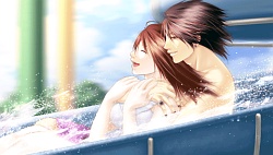 So the route kinda went down hill for me when Yuna finds that Yuuto has pics of his first love at home. He tells her how he was a shota who was in love with this BBA. ( ≖Д≖;) It hadn’t been brought up since but I was like well someone’s got mommy issues…which I guess is to be expected since his mother died when he was young. Shit hits fan when daddy tells Yuuto that he has to marry some rich ojousama and not this poor little girl Yuna. In the Happy End, Yuuto argues with his father about dating Yuna and leaving the house. He eventually wins the argument and tells Yuna he’ll make her happy. In the epilogue Yuto moves out on his own and works to earn his own money (despite his dad still worrying about him and sending servants to him with food.) In the Good End, Yuuto’s dad wants him to take over the business and intends to return overseas taking Yuuto with him. Yuuto fails at convincing him otherwise and he starts panicking and asks Yuna to come along to his private house where he runs into his butler. The butler tells him to try talking to the dad one more time, and this time he brings Yuna with him telling his father how much he loves her. The father tells Yuuto that the problem isn’t Yuna, but his son. Eventually the father gives his speech and tells Yuuto to do whatever he wants. In the epilogue, Yuuto attends college while helping out with his dad’s work….and getting randy with Yuna on his breaks. (´^ω^`) Once again I enjoyed the GOOD end more than the happy end…I guess my definition of “happy” isn’t what D3P thinks. In the side story Yuuto takes Yuna to Hawaii for their 1 year anniversary.