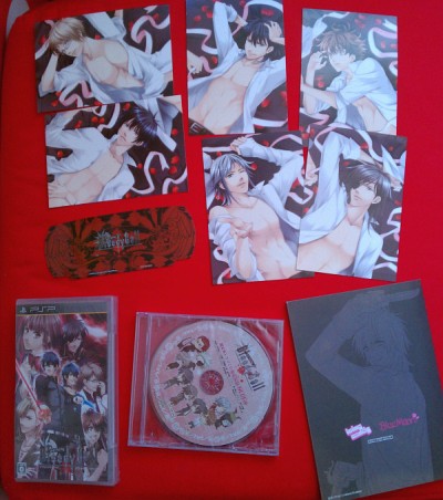 The LE came with drama CD, LE box, small art book, 6 naked mans post cards and a back-only PSP sticker. I promptly threw my Tokiya into the garbage and replaced the back ε=\_○ノ イヤッホーゥ! (been waiting to switch my PSP sticker but now I just saved $20 for no reason? XD.) Anyway the original story is the same and all the new stuff is in the omake so I guess I’ll be focusing on reviewing the omake.