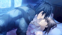 Kugami Kyo – Futaba’s been dating Kyo for about 2.5 years now and is living with him after graduating. He notices that she’s got a fever, getting dizzy and suddenly wants to eat strange foods. This could of course only mean one thing: Someone’s knocked up! When they return home, he tells Futaba to rest while he does all the household chores but apparently he can’t cook or clean and he just makes a mess instead. \( ^o^)/ Eventually she tells him that she’s preggo and he’s like WHY U NOT TELL ME SOONER WOMAN. After hearing it of course he’s happy and they cuddle in bed together while he says that she has to be more careful with her body from now on. (*´ω`*) Kyo’s dorky personality when he failed in the kitchen was cute but almost a shocker…I mean is this really that hard boiled serious sensei from the first game!? XD;; It was cute though so I guess I’ll let it go!