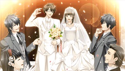 Jin – Futaba is now living together alone with Jin but Reimei acts like daddy and calls asking how she’s doing. Shiro tells Reimei to stop being a nag and thanks Futaba for the scarves she sent to them xD. Both Jin & Futaba realize they’re ronery being far away from everyone and that they wanna go visit everyone in Glast Heim. If you choose to want to see Shiro & Reimei, Jin agrees and so 2 weeks later, Shiro, Reimei & Futaba’s mom come to visit. The first thing Reimei says to Futaba is “its been a while, did you get fat?” LOOOOLLLL dsgsgsdg (○´゚ω゚`):;*.’:;ブッ. They all eat together and talk about what’s happening with Glas Heim and then Reimei bitches that Jin doesn’t do any housework. They go home in the evening, and then Futaba & Jin cuddle in bed thinking about the future babies they’re gonna make :lol:. If you chose that you only wanted to spend time with Jin then basically they continue their time together and in the end are grocery shopping. The grocery shopping CG reminded me of the one in Kent’s route in Amnesia later XD. I guess it was a cute addition to the original ending but I think I’ve grown some kind of inner hatred to Morikawa voiced characters so it didn’t seem as great to me lol. Only time it was cute was when Jin blushed at the thought of having babies with Futaba…if only they had more of that in the omake sigh. (´・ω・`)