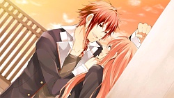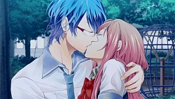 Ore-sama Kei (Selfish Douchebag) – Ok not gonna lie, I really don’t see the difference between a do-S and and Ore-sama. Usually they go hand in hand so splitting them like this seemed weird. The only visible difference was that Do-S had a brain while Ore-sama was a loud idiot. He’s also more demanding I guess since one day he tells her to come to his place to make him lunch cause his relatives are out. Like in other routes, Riito invites her to go to a “pool” but its just a kiddy pool in the backyard 😆 She leaves his house and calls her friend Matsuri to hang out instead. XD Saya goes to Karaoke with him a few days later but he ends up singing everything himself for an hour. While he goes to the bathroom, Saya orders too much food so he tells her to call someone else to help them finish it. He sings a song where he goes “I’ll never let you go, I love you” and Saya blacks out. Just then Matsuri & Satoru show up and they think that Riito killed her ww. They go to the beach together but Saya starts blacking out at seeing hot ikemans in swimsuits so Riito gets pissed and walks off. She runs after him and somehow falls into the ocean and starts drowning. Riito saves her and almost gives her mouth to mouth but she wakes up and punches him away. One day after school Saya finds Shion passed out and dying so she takes him home to let him rest. Riito barges in telling Shion to gtfo saying saya belongs to him. After going home in Sept ember from an outing with friends, they go up to the school roooftop and watch the stars while holding hands and lying down. Then accidentally he falls on top of her and they kiss…but LOLOL NO CG LOL of course D3p of course. PriColle: He refuses to confess part deux. Afterwards as they are walking home Riito tells Saya he’ll make her “understand” his love with the recycled kiss cg. In the epilogue, Riito and Saya have to take care of a baby for some relatives and it just keeps bawwing. They then imagine themselves in a few years with Saya preggo with Riito’s baby lol. The fact that they didn’t get a kiss cg for that rooftop scene was probably the most memorable thing from this route, and maybe that ridiculous backyard pool event. Otherwise I couldn’t wait for do-S Riito to shut the fuck up.