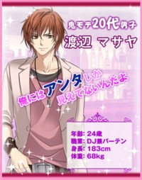 Terayama Satoru – Satoru is Nao’s ex boyfriend and Mr. 30s. She wonders why in the world she ever broke up with him because he’s one sexy beast. She starts talking to him again on stuff like restaurants and favorite bands but is stressed when he tells her he has “people over” when she tries calling him. It gets awkward when she stalks his office and him and his coworkers accidentally see her. Since she used to work with them they invite her to go drinking but Satoru immediately says “oh she’s too busy” and pretty much tells her to GTFO indirectly. Not only that but he notices her former female coworker clinging all over Satoru and she gets extremely depressed. She goes to a bar and runs into a 24 year old DJ who hits on her but she’s like sigh whatever and ends up leaving her cell phone there. When she call it, he picks up and tells her to come by the bar and get it the next night. She does but she also gets so drunk that he ends up taking her home and..sleeping with her in bed. He claims he’d never lay a hand on a drunk woman but she kicks him out just as Satoru calls her. He’s depressed because he messed up at work and asks Nao to go drinking. She agrees and they both end up getting so drunk they go back to his place and screw. Nao wakes up the next morning not remembering anything and when she goes back to her place, she finds Masaya sleeping in her bed. He’s pissed at her and he asks her if she slept with her ex but she twists out of it. Two weeks go buy with no word from Satoru until he finally response to her asking if she still wants to go to their favorite band’s concert. They make plans to meet up and try not to discuss what happened. After the concert basically they get in a fight because she sees him with Sayuri and he gets mad that Masaya always comes over her place and has dinner. Since I failed with my wonderful skills to get the love end, I got the Normal end where Satoru and Nao break up and move on their separate ways. Sayuri and Satoru get married while Nao continues with her job sigh =_=;. Oh well screw you Satoru, he was such a jerk that I couldn’t help but pick the choices I did. The only reason they broke up in the first place is because after dating for 5 years and wanting to marry, he chickened out and laughed like an idiot so Nao dumped him. She’s better off without him anyway!