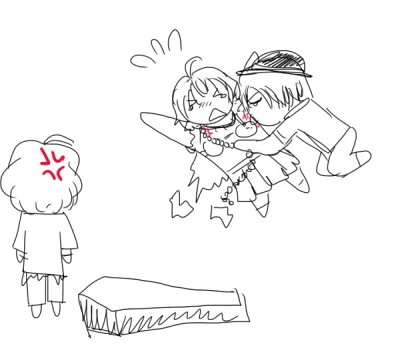 - Laito shakes bitch-chan until she wakes up and then they both start munching her because her MAGICAL BLOOD somehow replenished cause being in a 3some with a hentai and a tsundere turns her on 😆