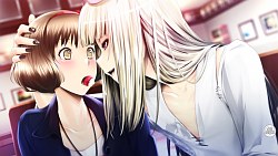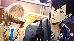 Chihiro knows he needs to work but she goes and grabs him asking him not to leave her alone. Hammer agrees to stay by her side and when she falls asleep he starts working away on his project. The next day she stays at his place again because the stalker is still apparently lurking near her house. Hammer then decides to try to scare the guy away by spreading news about a “stalker after a high school girl” and it spreads like a wildfire. Yuuto and Lucy think that Hammer abducted Chihiro and burst into Hammer’s hotel to try and save her. She has to explain to them that it’s a misunderstanding and they they decide to instead LURE and catch the stalker. He tells them to get on Twitter Rejetter and they find the guy’s account and he’s got a ton of pics of Chihiro posted on it. They stalk him to Shibuya and follow his tweets. Eventually they catch him and he tries to run away by attacking Hammer who seems weak to him, but then Devil Hammer comes out and threatens to smash the guy’s face into the wall. The guy admits he’s just a crazy fan of Chihiro and he promises to never do that again. They let him run away only because Lucy says Yuuto’s company will call Rejetter and have the account removed. Chihiro then kisses hammer as a thanks for protecting her and he passes out as usual. He then walks her home and comes into her room. They talk and he asks her to someday be his wife and she says only if he learns to kiss her without going unconscious. In the Love End, they go on a date and Hammer is finally able to kiss Chihiro without any problems. He then asks her to marry him once more. In the Wedding end they get married on the beach. In Another Story, Hammer and Chihiro do some Woodlink event where they have to basically make it out of the Woodlink lab maze on their own. They run into Yuuto & Lucy but trick them with Hammer’s Yandere Tactics (TM) and then run away together. Well Hammer was Hammer but I’m glad that the yandere thing was just an escape method and in fact he was pretty sweet most of the route. I kinda wish we got a little more of Devil Hammer…dat sexy suwabe voice (:.;゚;Д;゚;.:)ハァハァ.