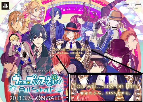 - I’ve been pretty much ignoring Utapri news after Debut but I just had to LOL at this tagline. “You will…kiss on him.” Wait I thought the translation is “You might…kiss him.” We’re gonna kiss on him? Sit on top of him and kiss him? Oh Broccoli you so randy! The package illustration is pretty nice though I will admit. Too bad I have 0 interest in the game since they’d have to make all the senpai’s personality warped & out of character to actually take romantic interest in Haruka.